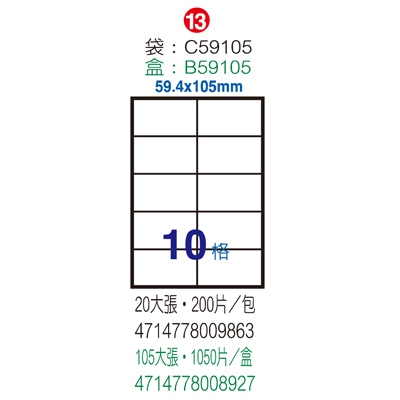 Herwood 鶴屋牌 10格 59.4x105mm NO.B59105 A4雷射噴墨影印自黏標籤貼紙/電腦標籤 105大張入