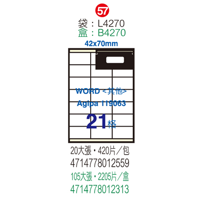 Herwood 鶴屋牌 21格 42x70mm NO.B4270 A4雷射噴墨影...