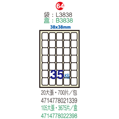 Herwood 鶴屋牌 35格 38x38mm NO.B3838 A4雷射噴墨影...