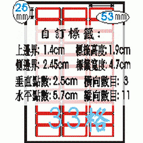 Herwood 鶴屋牌 33格 25x53mm NO.B4015 紅框 A4雷射...