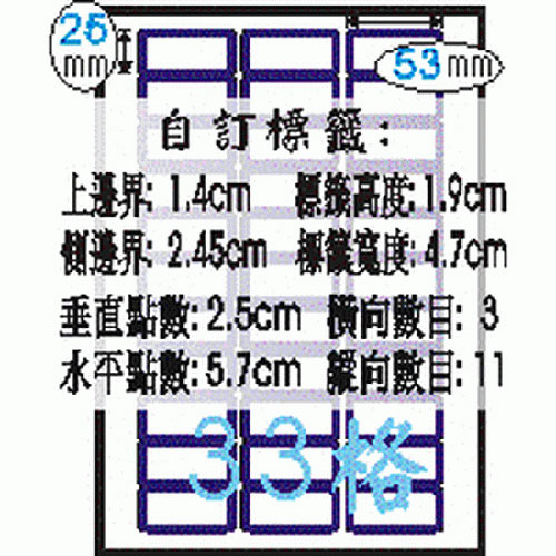 Herwood 鶴屋牌 33格 25x53mm NO.B4016 藍框 A4雷射...