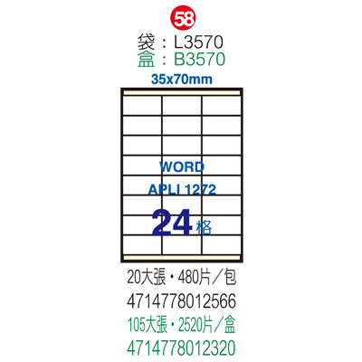 Herwood 鶴屋牌 24格 35x70mm NO.B3570 A4雷射噴墨影...