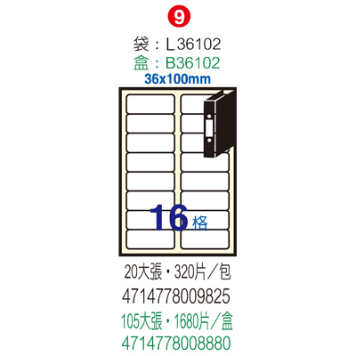 Herwood 鶴屋牌 16格 36x102mm NO.B36102 A4雷射噴...