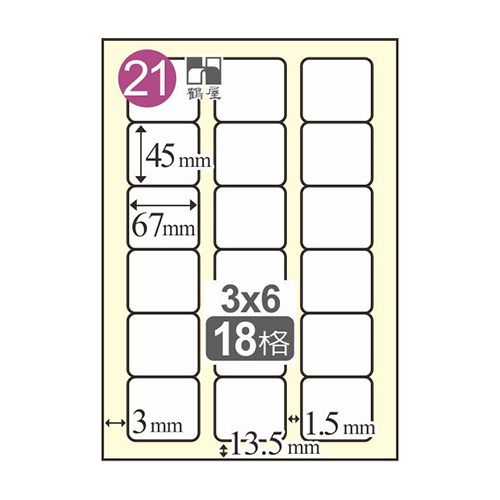 Herwood 鶴屋牌 18格 45x67mm NO.A4567 A4高溫快速三合一雷射噴墨影印自黏標籤貼紙/電腦標籤 20大張入