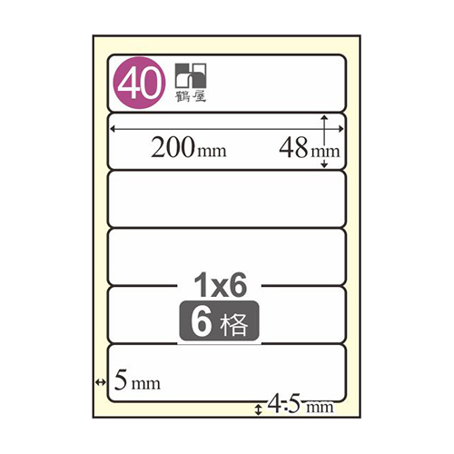 Herwood 鶴屋牌 6格 48x200mm NO.A48200 A4高溫快速三合一雷射噴墨影印自黏標籤貼紙/電腦標籤 20大張入