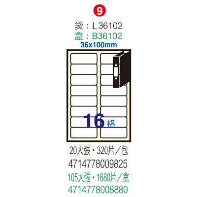 Herwood 鶴屋牌 16格 36x100mm NO.L36102 A4雷射噴...