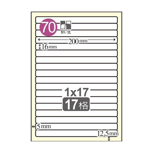 Herwood 鶴屋牌 17格 16x200mm NO.A16200 A4高溫快速三合一雷射噴墨影印自黏標籤貼紙/電腦標籤 20大張入