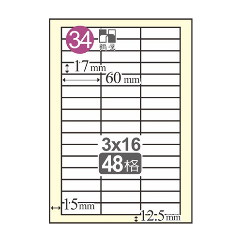 Herwood 鶴屋牌 48格 17x60mm NO.A1760 A4高溫快速三...