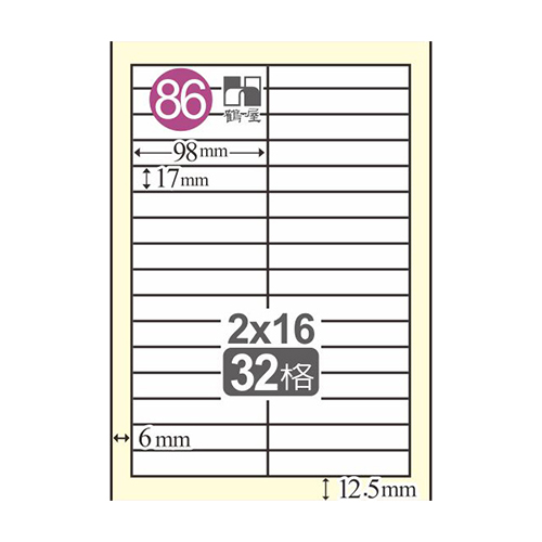 Herwood 鶴屋牌 32格 17x98mm NO.A1798 A4高溫快速三合一雷射噴墨影印自黏標籤貼紙/電腦標籤 20大張入