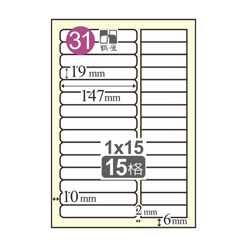 Herwood 鶴屋牌 15格 19x147mm NO.A19147 A4高溫快速三合一雷射噴墨影印自黏標籤貼紙/電腦標籤 20大張入