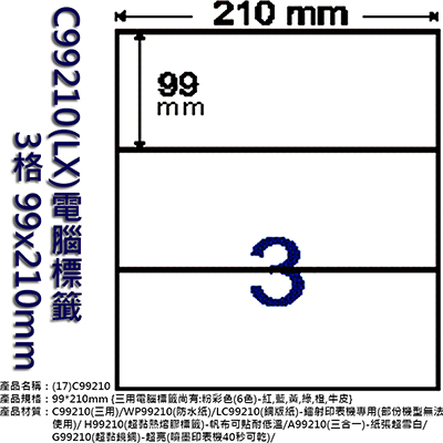 Herwood 鶴屋牌 3格 99x210mm NO.C99210(LX) A4雷射噴墨影印自黏標籤貼紙/電腦標籤 1000大張入