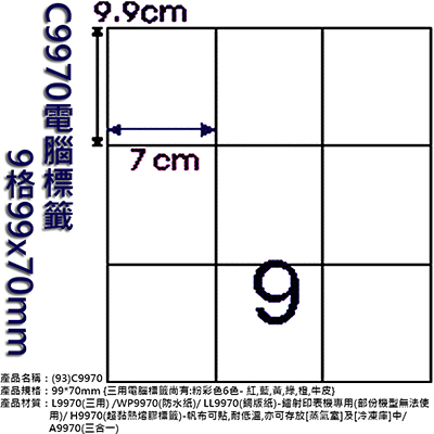 Herwood 鶴屋牌 9格 99x70mm NO.C9970 A4雷射噴墨影印...