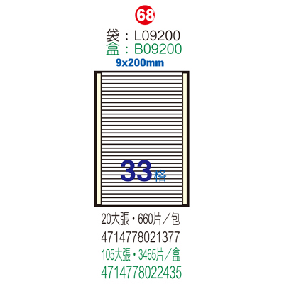 Herwood 鶴屋牌 33格 9x200mm NO.L09200 A4雷射噴墨...