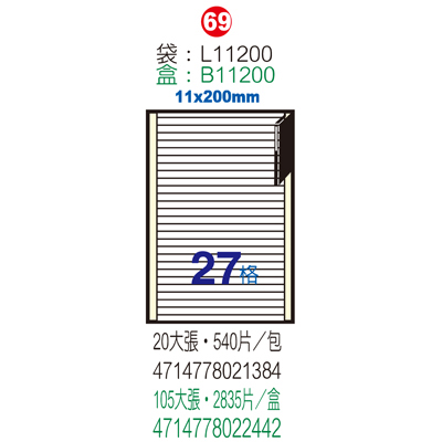 Herwood 鶴屋牌 27格 11x200mm NO.L11200 A4雷射噴...