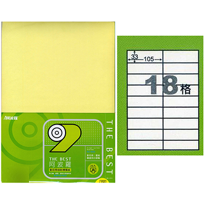 阿波羅 105×33mm NO.9218Y 18格 淺黃 A4 雷射噴墨影印自黏標籤貼紙 20大張入