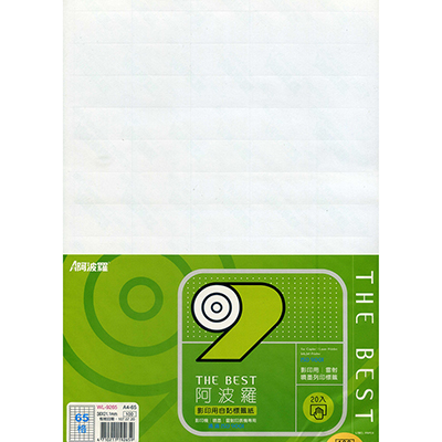 阿波羅 35x29.7mm NO.9260 60格 A4 雷射噴墨影印自黏標籤貼紙 20大張入