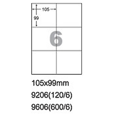 阿波羅 105x99mm NO.9606N 6格 A4 雷射噴墨影印自黏標籤貼紙 100大張入
