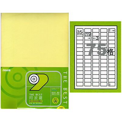 阿波羅 35×19mm 切圓角 NO.9675AYN 75格 淺黃 A4 雷射噴...