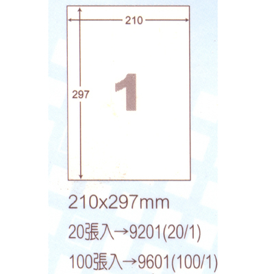 阿波羅 297x210mm NO.9601N 全張 A4 雷射噴墨影印自黏標籤貼紙 100大張入