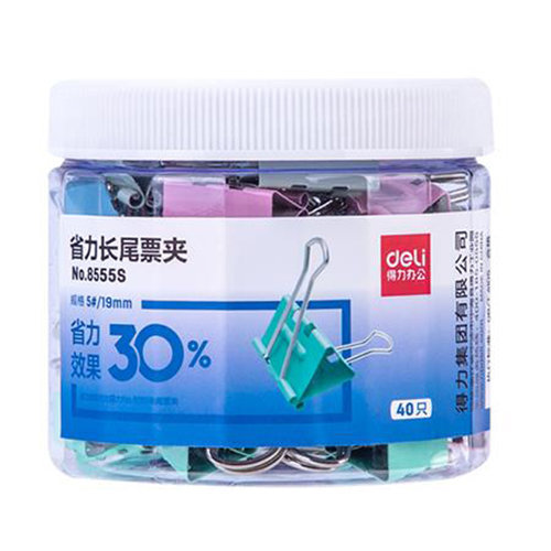 得力Deli省力彩色長尾夾/E8555S/19mm/40支