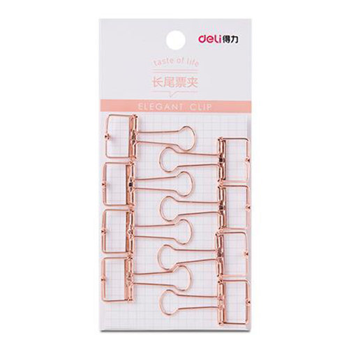 得力Deli玫瑰金簍空長尾夾/9414/19mm/8支