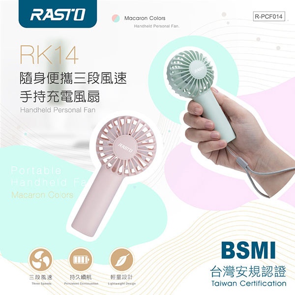 RASTO RK14 隨身便攜三段風速手持充電風扇