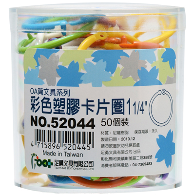Foot 足勇 52044 彩色塑卡片圈環 1-1/4吋 50入