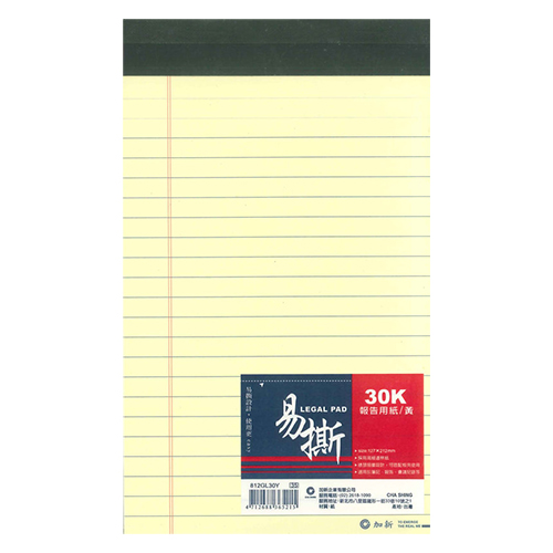 CHA SHIN 加新 812GL30Y 30K易撕報告紙(黃) 127x212mm