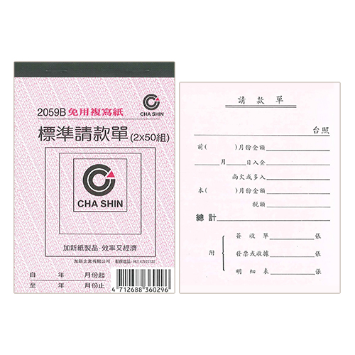 CHA SHIN 加新 2059B 非碳72K二聯請款單 50入 89×127mm
