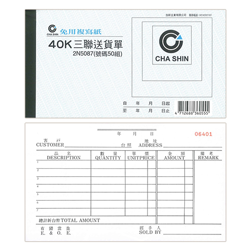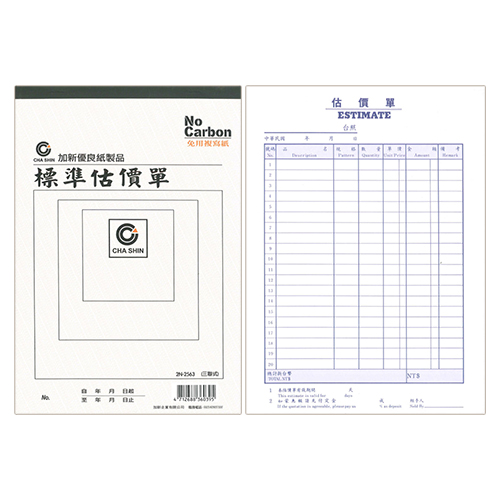 CHA SHIN 加新 2N2563 非碳16K三聯估價單 188×270mm