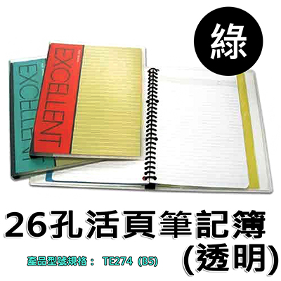 HFPWP 超聯捷華富 26孔活頁筆記簿(透明) 綠