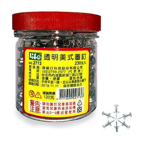 Life 徠福 NO.2713透明美式圖釘(約230入)