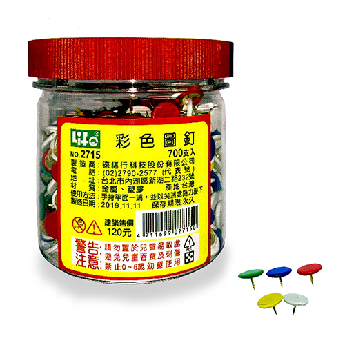 Life 徠福 NO.2715彩色圖釘(約700入)