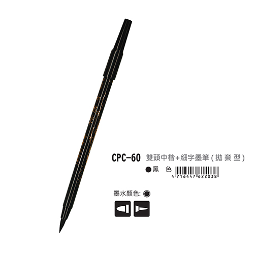 PLATINUM 白金 CPC-60 拋棄式雙頭中楷+細字卡式墨筆/自來水毛筆 黑