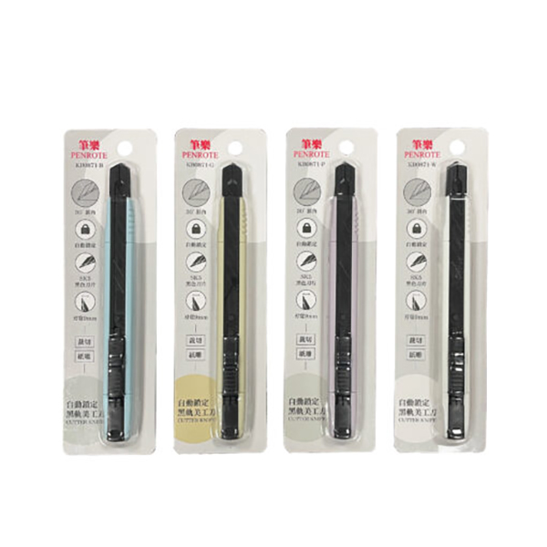 Penrote 筆樂 KB0871 30度自動鎖定黑軌美工刀 混色出貨