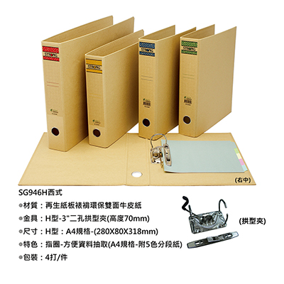STRONG 自強牌 SG946H 環保 西式 二孔拱型夾/檔案夾 A4 280X80X318mm