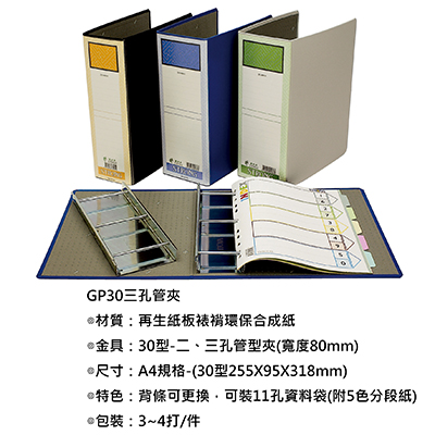 【來電詢價】STRONG 自強牌 NO.GP30 3孔管型夾/檔案夾255X95X318mm