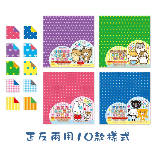不反光兩面兩色/雙面雙色色紙 10組色 約62張入(含2張金箔紙) NO.5022