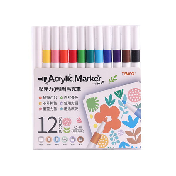 Acrylic Marker 節奏12色壓克力丙烯馬克筆/彩色筆/麥克筆/嘜克筆/美工筆/彩繪筆 AC-90
