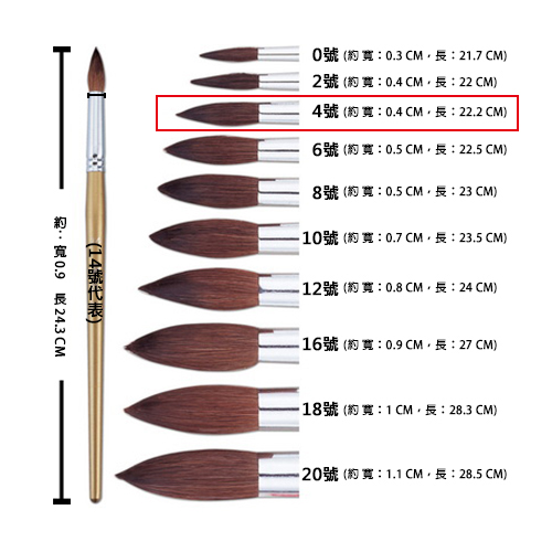 Pentel 飛龍牌 ZBS1-04T 水彩畫筆/水彩筆 圓頭型 丸型 4×22...