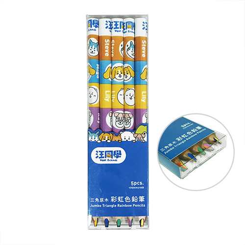 美勝 汪同學三角原木5色彩虹色鉛筆 5支入