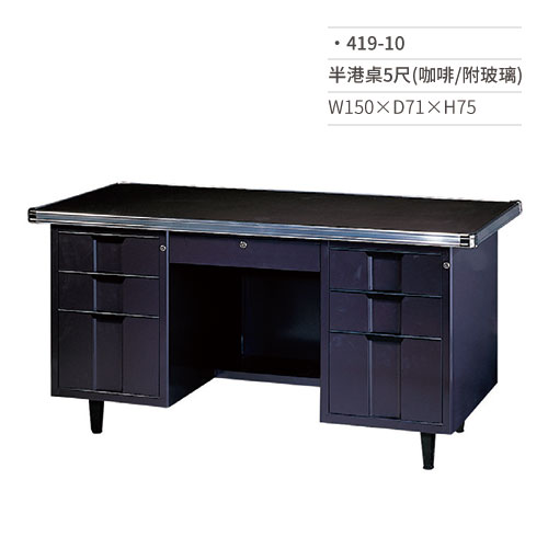 半港桌5尺/辦公桌(咖啡/附玻璃/左三屜右三屜)419-10 W150×D71×H75