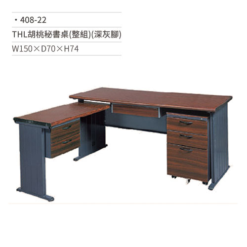 THL胡桃秘書桌/電腦桌/辦公桌(整組/抽屜有鎖/深灰腳)408-22 W150×D70×H74