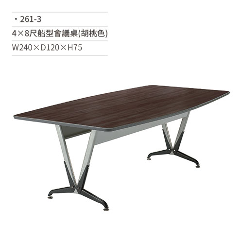 4×8尺船型會議桌(胡桃色) 261-3 W240×D120×H75