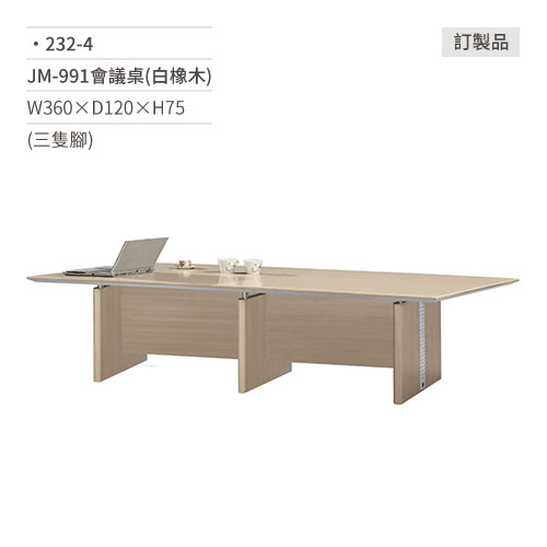 JM-991會議桌(白橡木/三隻腳) 232-4 W360×D120×H75 訂...