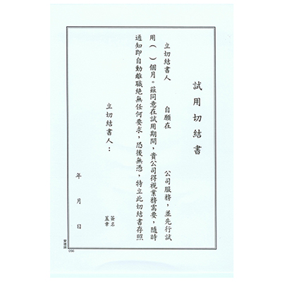 AITE 愛德牌 056 職務試用切結書 袋入