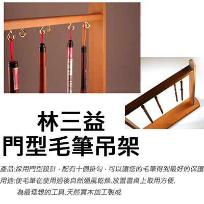產品敘述:採用門型設計,配有十個掛勾,可以讓您的毛筆得到最好的保護