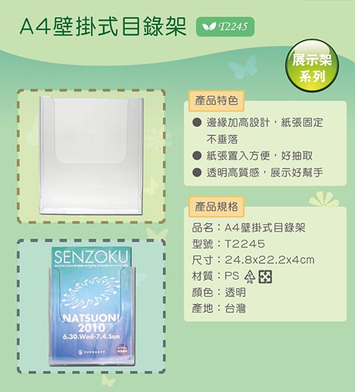 WIP 台灣聯合 T2245 A4壁掛式目錄架/型錄架/標示架 24.8x22.2x4cm