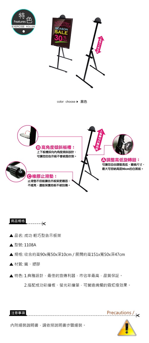 SUCCESS 成功 NO.1108A 輕巧型告示板架 47x151x50cm