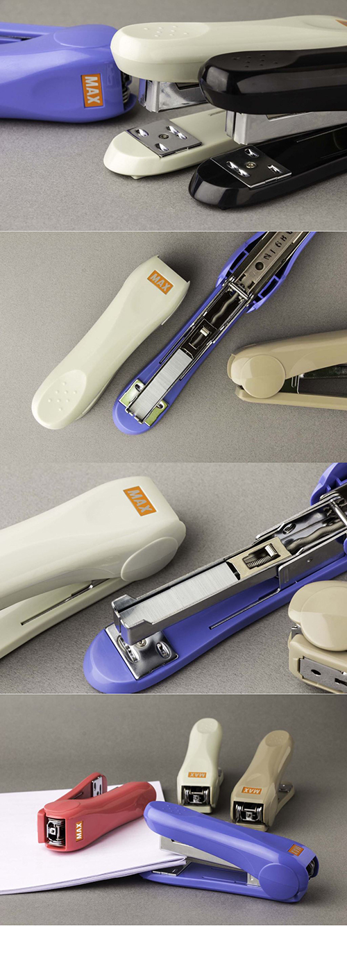 精巧細緻的省力美學,一次可裝訂30張紙,指間無負擔的輕快感讓工作效率倍增。針匣容量可填裝50枚釘書針,順暢不卡針,輕鬆扳開上蓋即可補充。圓弧流線機身輕巧好握,手感絕佳,共有黑、藍、紅、灰、米共五色,散發繽紛亮眼的光澤。